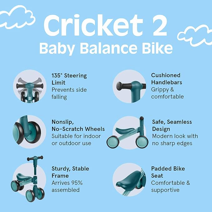 • COMFORT & CONTROL: Ergonomic handlebars and padded seat ensure cozy rides on this toddler bike, while the design helps develop balance - a must-have among 1-year-old girl gifts and toddler toys