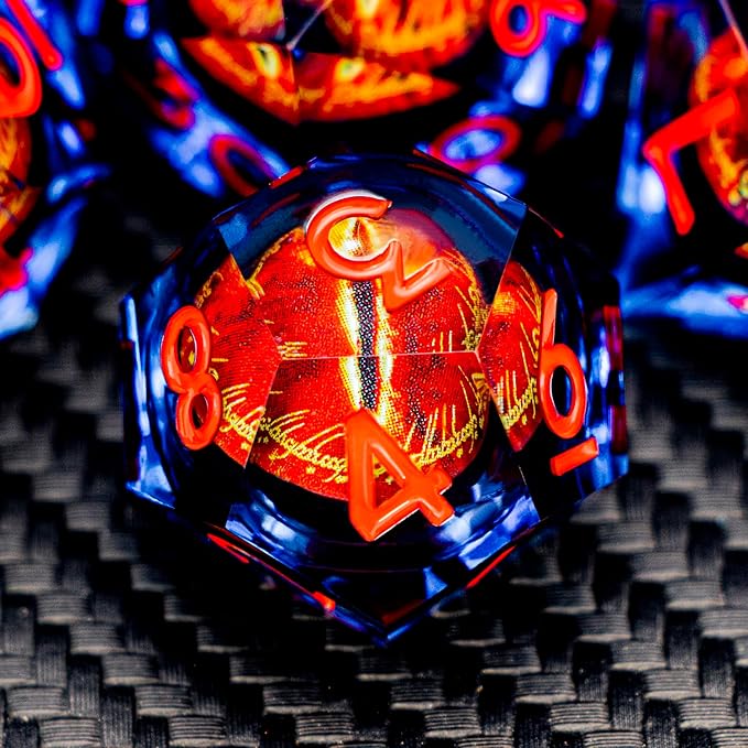 ARUOHHA DND Resin Dice Gazes Eye Dice Blue Red Liquid Core Flaming RPG Sharp Edged Dice Set with Gift Box, Polyhedral D and D Dice Set Compatible with Dungeons Dragons Role Playing Game D20 D6