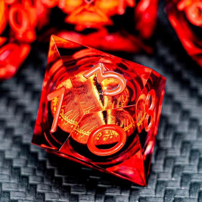ARUOHHA DND Resin Dice Gazes Eye Dice Red Liquid Core Flaming RPG Sharp Edged Dice Set with Gift Box, Polyhedral D and D Dice Set Compatible with Dungeons Dragons Role Playing Game D20 D6